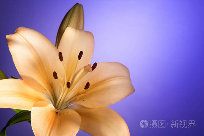 背景与桃色百合花照片 正版商用图片05z6q8 摄图新视界